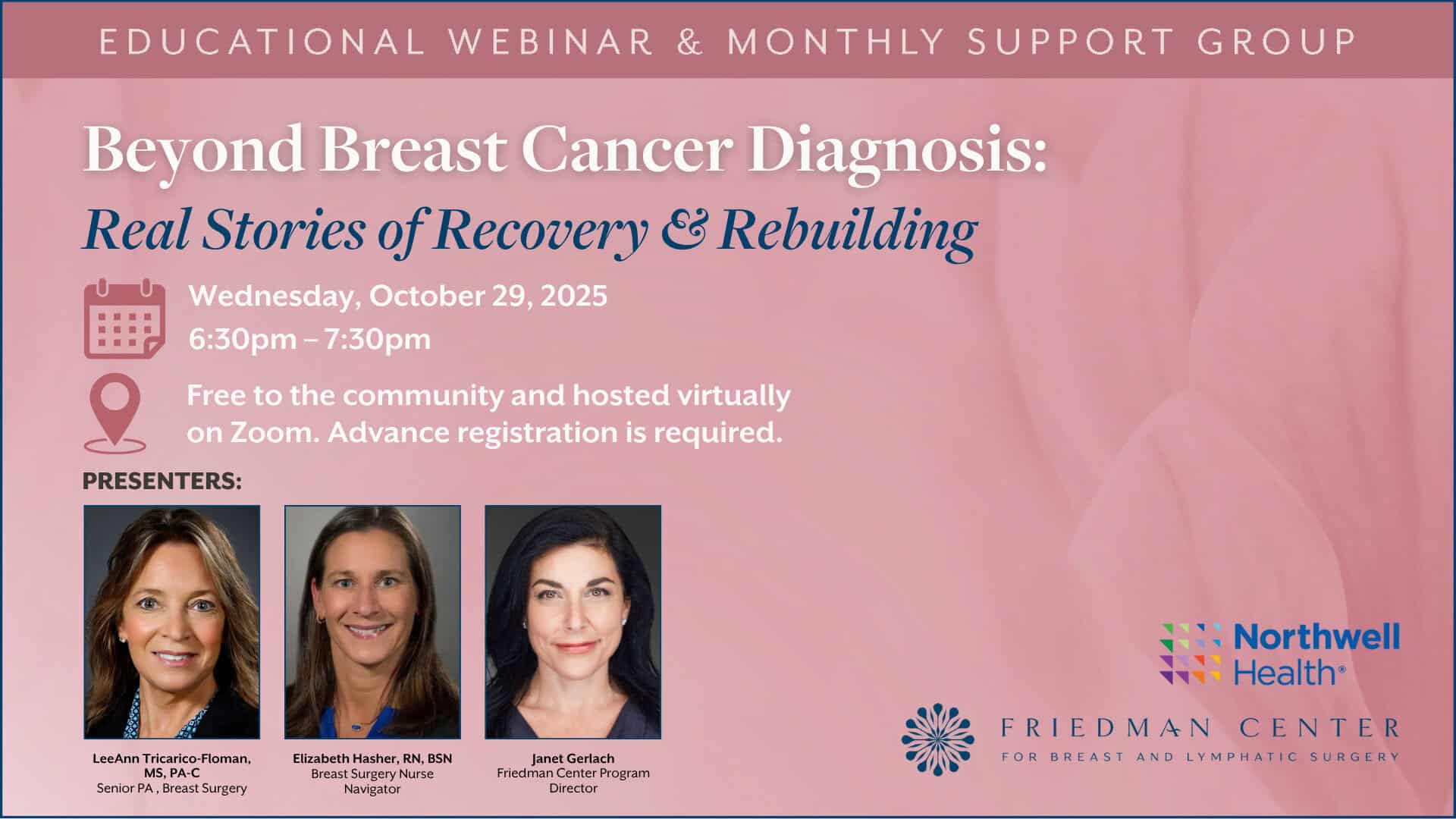 In honor of Breast Cancer Awareness Month, this special webinar brings together real patient stories to highlight the emotional and physical journeys of breast cancer survivors and previvors. From surgery and reconstruction to fertility, body image, and emotional healing—hear how each person found strength, clarity, and support on their unique path. This live, virtual webinar features heartfelt conversation, expert insights, and community connection.